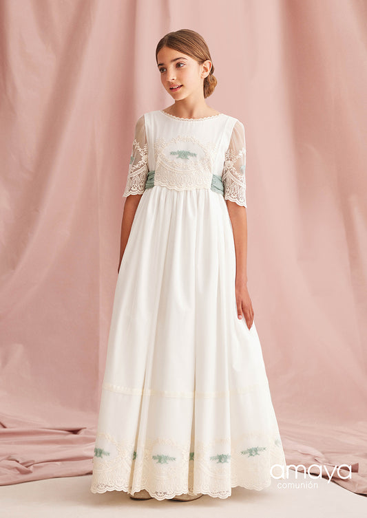 Vestido de comunión 637009MD (con lazo en color blanco) de la marca AMAYA