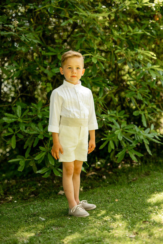 طقم قميص وسروال قصير من الكتان من Paz Rodriguez "Ceremonia".