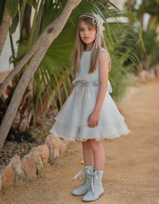 فستان حفل 376 بفيونكة خضراء أكوامارين للفتيات من ماركة MIMILU