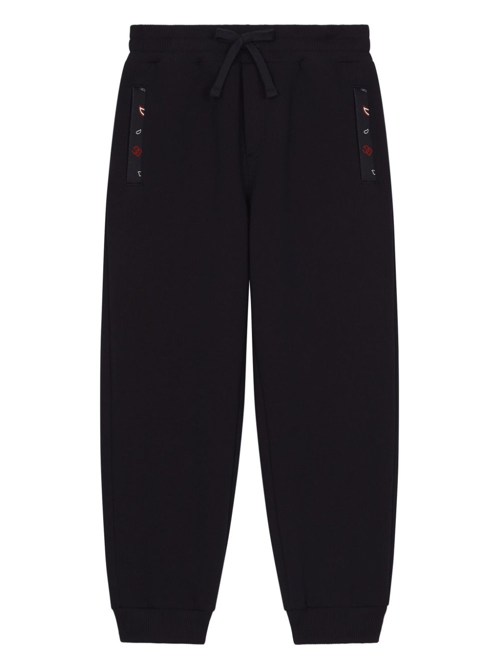 بنطال رياضي بطبعة الباندانا من علامة دولتشي آند غابانا للأطفال. أزرق داكن، 100% قطن، منسوج، حزام خصر مطاطي برباط، جيب رقعة في الخلف، طباعة باندانا، جيبان جانبيان،