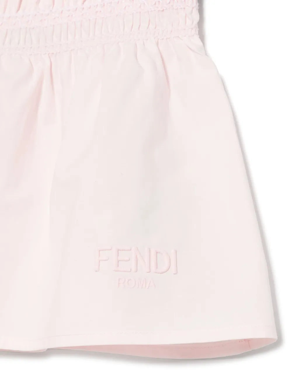 تنورة بيبي بوبلين من ماركة فندي كيدز . تنورة للأطفال من قماش البوبلين باللون الوردي مع حزام خصر مطاطي وتطريز فندي بنفس اللون على الجهة الأمامية.