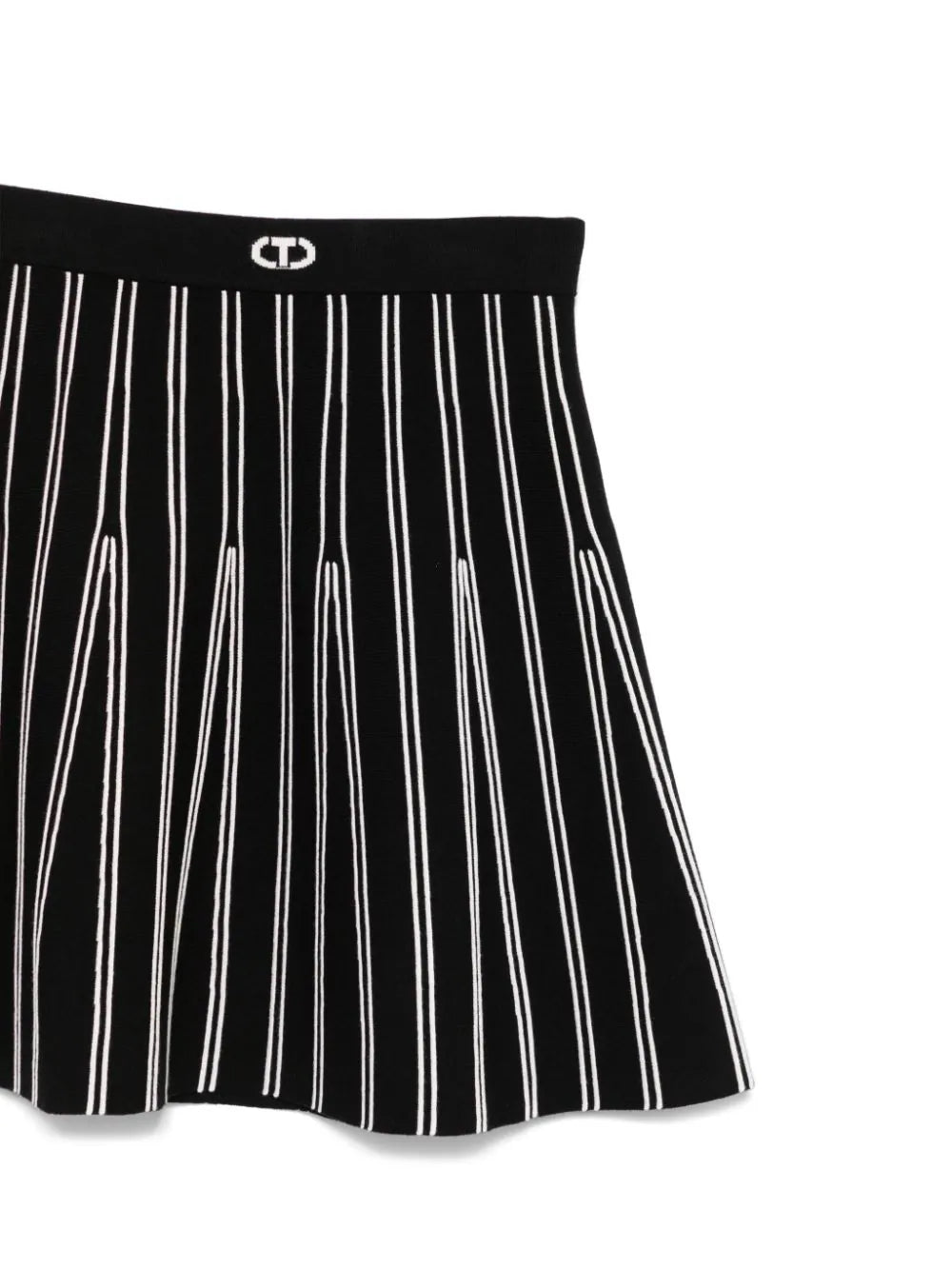 جيبة من ماركة TWINSET. اللون أبيض وأسود، تفاصيل معطف منقوشة، حزام خصر مطاطي مع شعار، واسع، غير مبطن، حاشية مستقيمة. جيبة من ماركة TWINSET، أصلية ولا تنسى للأطفال.