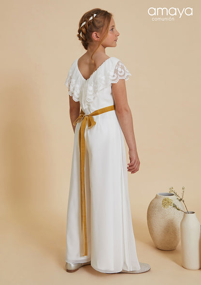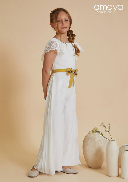 بذلة 616034 فستان المناولة باللون الأبيض للبنات من ماركة أمايا. جمبسوت بدون أكمام، رقبة دائرية، ظهر مفتوح، مزين بالدانتيل الزهري، إغلاق بسحاب. تمثل أمايا دائمًا الأسلوب الرومانسي المميز للعلامة التجارية، وكما هو الحال في كل مجموعة، فهي تمثل التزامًا كبيرًا بالابتكار والحرفية في إكسسواراتها.