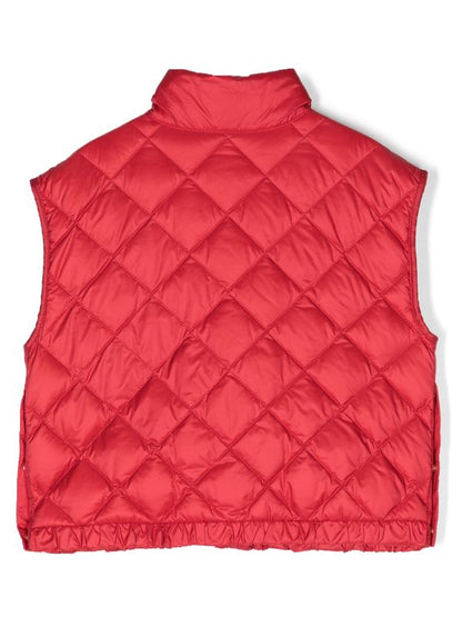 سترة غارونا حمراء مبطنة بدون غطاء رأس ومزينة بشعار العلامة التجارية MONCLER. اللون الأحمر، حشوة من الريش، تصميم مبطن على شكل ماسة، رقعة شعار على الصدر، تصميم بدون غطاء للرأس، ياقة قائمة، سحاب أمامي للإغلاق، جيبان أماميان، حواف مرنة، تصميم بدون أكمام وحاشية مستقيمة، مبطن بالكامل. ملابس من العلامة التجارية MONCLER هو تصميم أصلي يمكن التعرف عليه في جميع أنحاء العالم. تتميز ملابس العلامة التجارية بالأناقة والعملية والخفيفة، وتضمن الراحة والحماية المذهلة ضد الطقس العاصف.