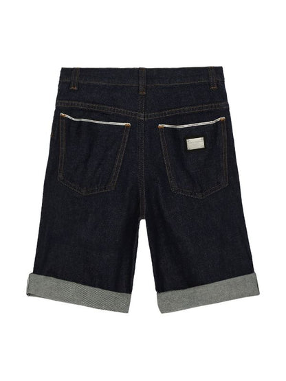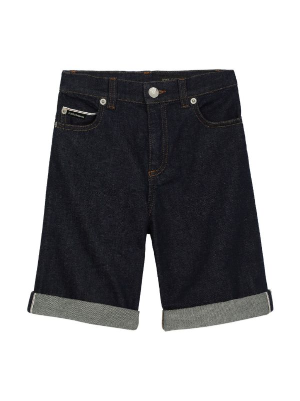 شورت برمودا من قماش الدنيم للأولاد مع لوحة شعار Dolce&Gabbana
