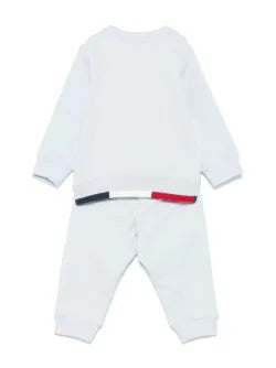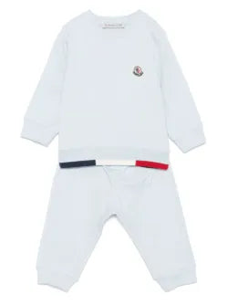 طقم رياضي من القطن من مونكلير للأولاد الصغار مع حواف ثلاثية الألوان. مجموعة ملابس رياضية زرقاء فاتحة للأولاد الصغار، هدية رائعة أو إضافة عملية لخزانة الملابس، تتميز بزخارف ثلاثية الألوان. ملابس من العلامة التجارية MONCLER هو تصميم أصلي يمكن التعرف عليه في جميع أنحاء العالم.