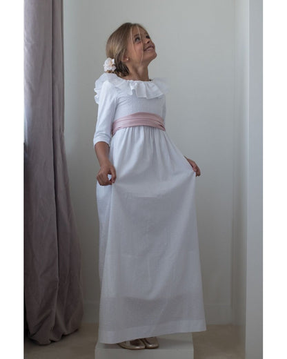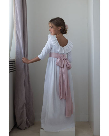 فستان Plumetti Communion باللون الأبيض مع فتحة عنق خلفية من ماركة PETRITAS (لا يشمل القوس)