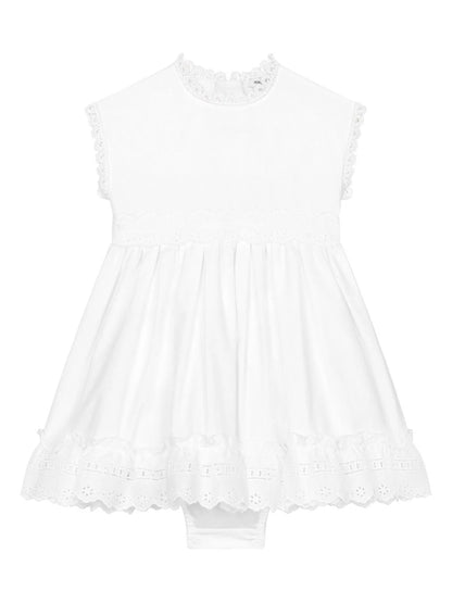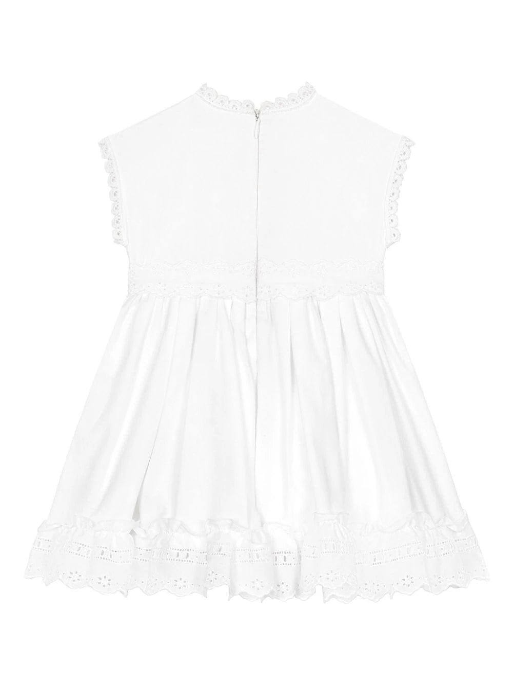 فستان مع حافة من الدانتيل من دولتشي آند غابانا. اللون الأبيض ، القطن، ت قماش بوبلين، حواف إنجليزية مطرزة، رقبة دائرية، سحاب خلفي مخفي، بدون أكمام، حاشية مستديرة، سروال داخلي متناسق. تعكس ملابس الأطفال من العلامة التجارية الشهيرة عالميًا Dolce & Gabbana اتجاهات الموضة للبالغين، مع الحفاظ على أقصى درجات الراحة والجودة والتصميم الحصري والأسلوب المميز.
