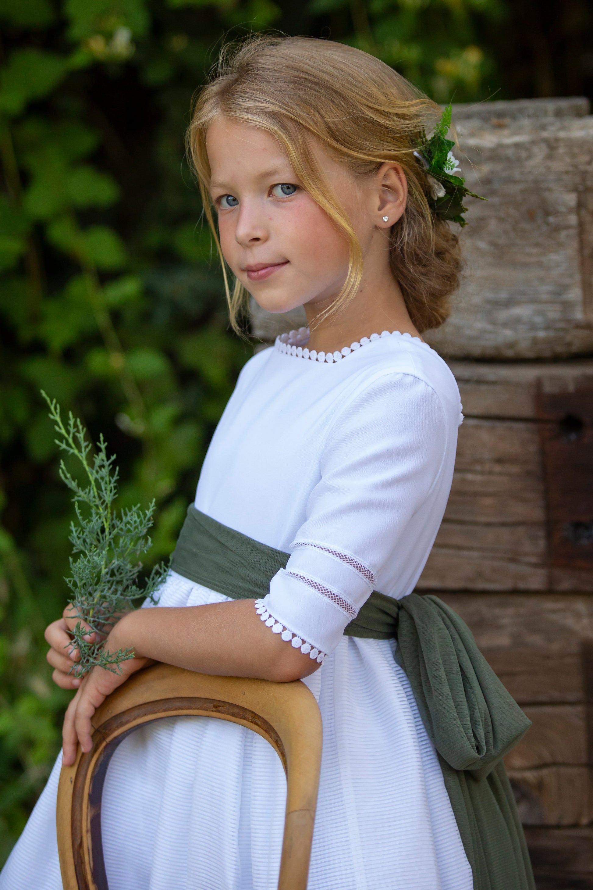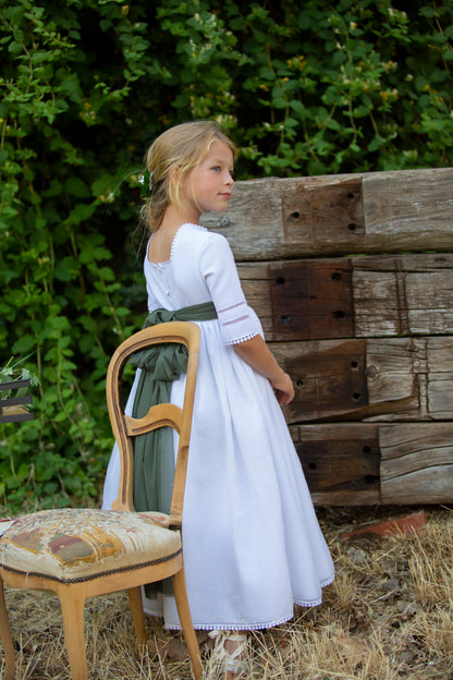 فستان CALABRIA للمناولة من ماركة Un Vista Para Tí. ملابس بتفاصيل، نصف كم. جسم نموذج كالابريا مصنوع من المطاط الأبيض. مدخلان أنيقان للغاية يكسران توحيد الأكمام، ويزيلان أي أثر للرتابة منها. رقبة نموذج كالابريا، التي يمكن التعرف عليها من خلال خطوطها المستقيمة، مزينة بسلسلة من أشجار الفراولة البيضاء المسطحة. سنجد نفس أشجار الفراولة لاحقًا على الجزء الخلفي المنخفض وفي الجزء العلوي من التنورة. إذا لم تكن أشجار الفراولة البيضاء المسطحة والرقبة المربعة في الأمام والخلف رومانسية بما فيه الكفاية، فإن تصميم التنورة المصنوعة من الأورجانزا المخططة مع الخطوط الأفقية يُكمل روح الرومانسية التي تم تصميم هذا النموذج بها. يتضمن هذا النموذج الوشاح . فستان بسيط ورومانسي .