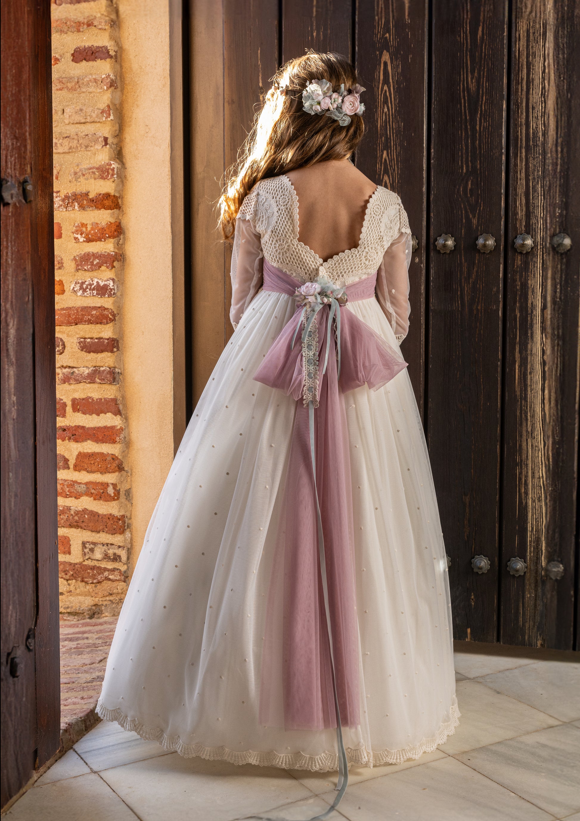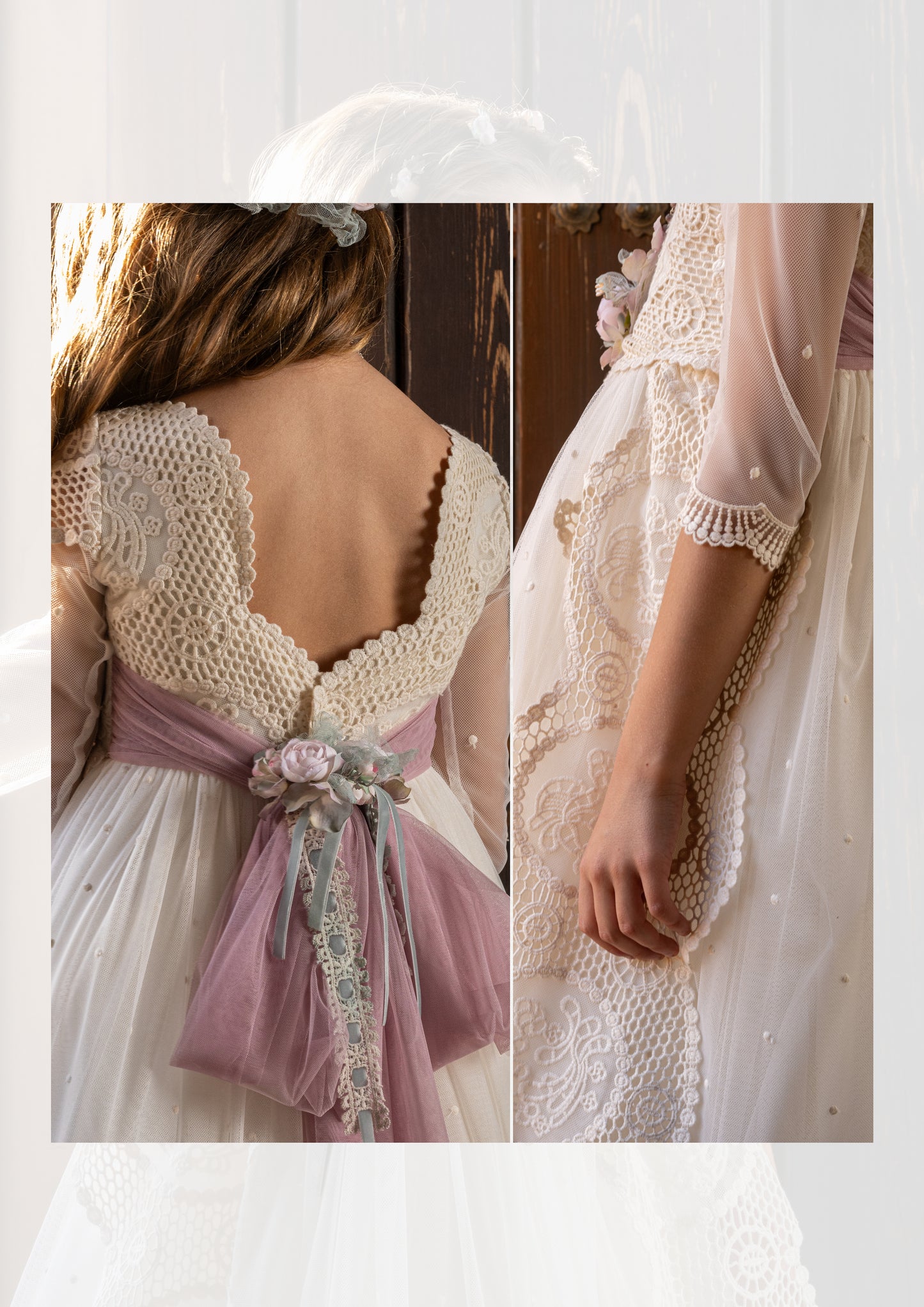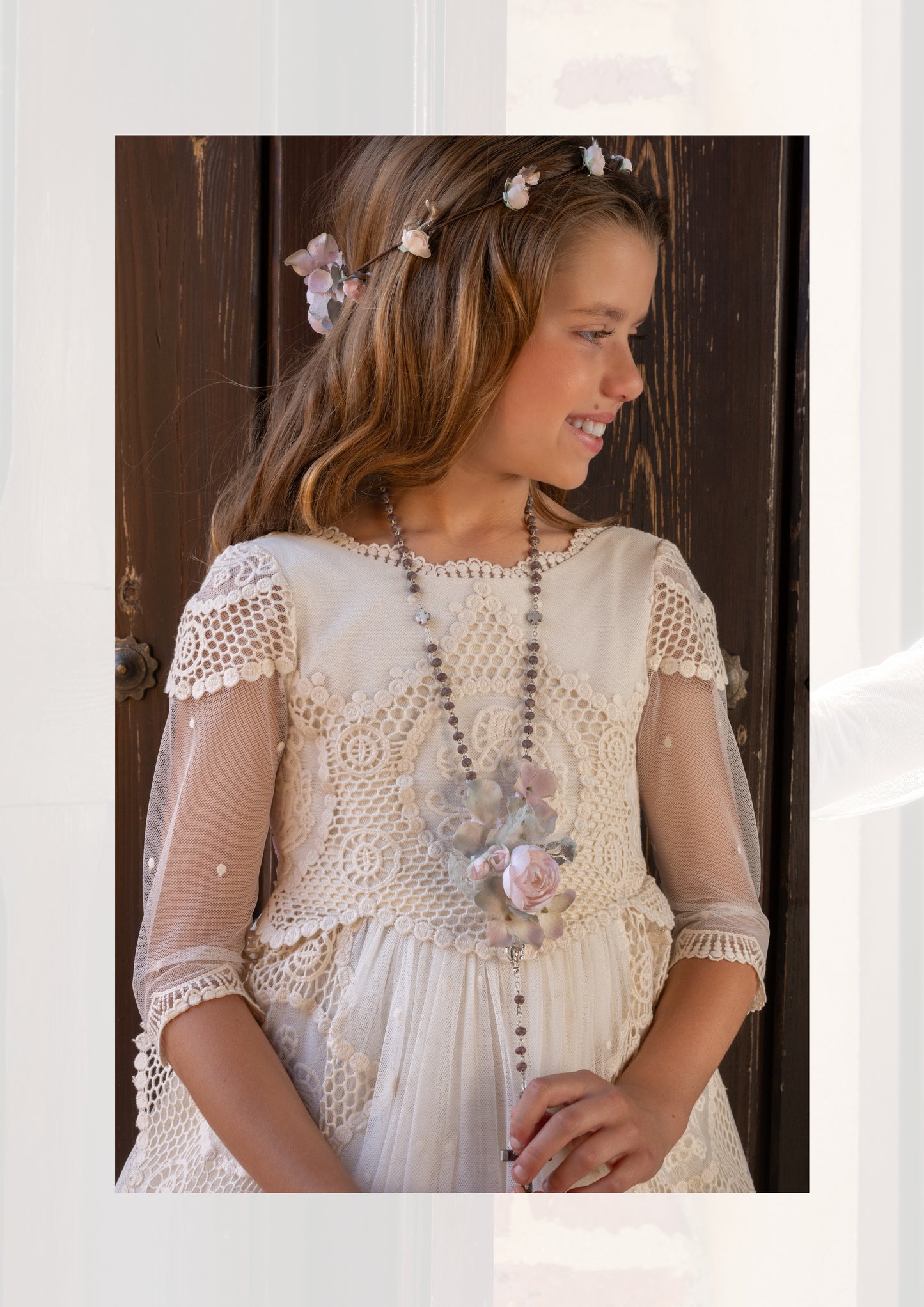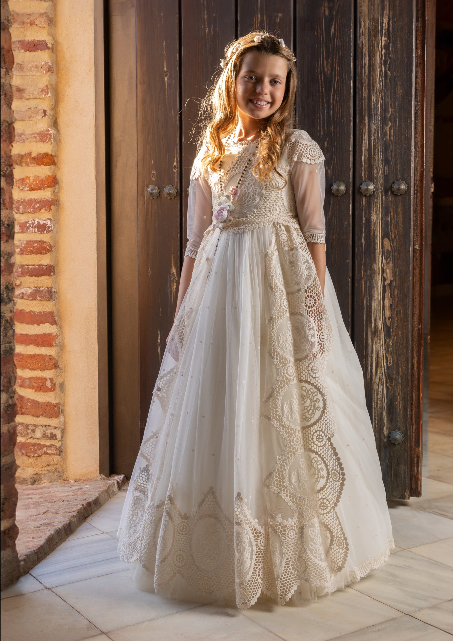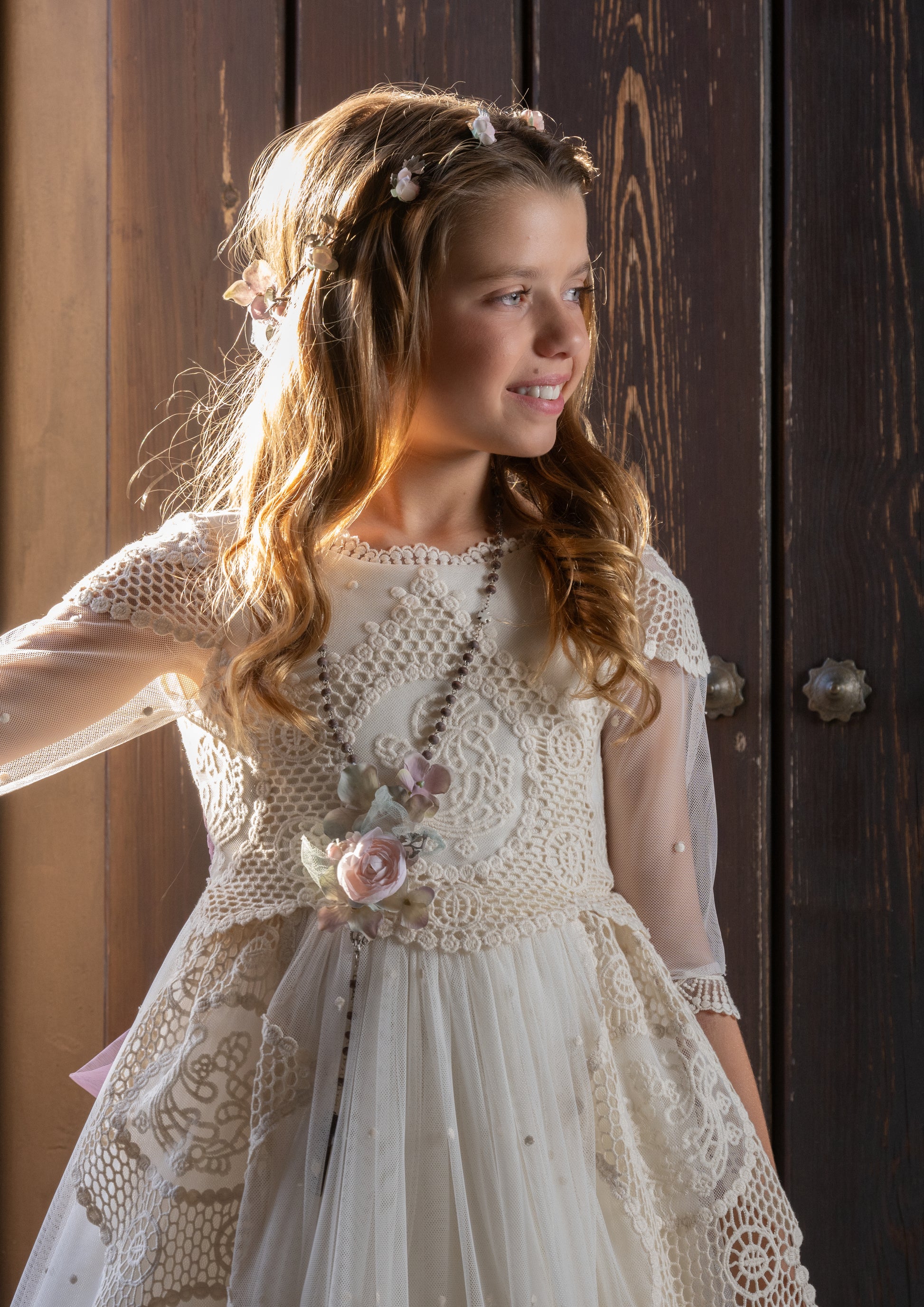 فستان مناولة APRIL للفتيات من ماركة Manuela (يشمل تاج الزهرة)