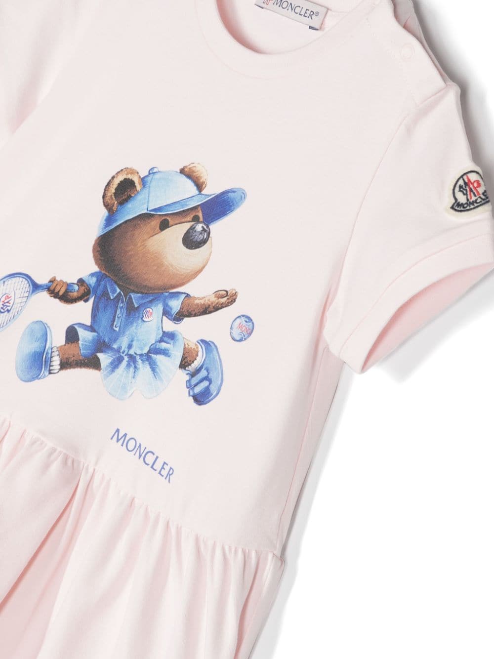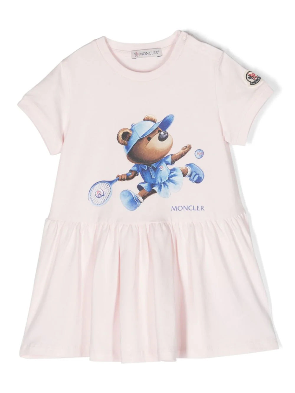 فستان وردي بطبعة دب تيدي من ماركة مونكلير للبنات