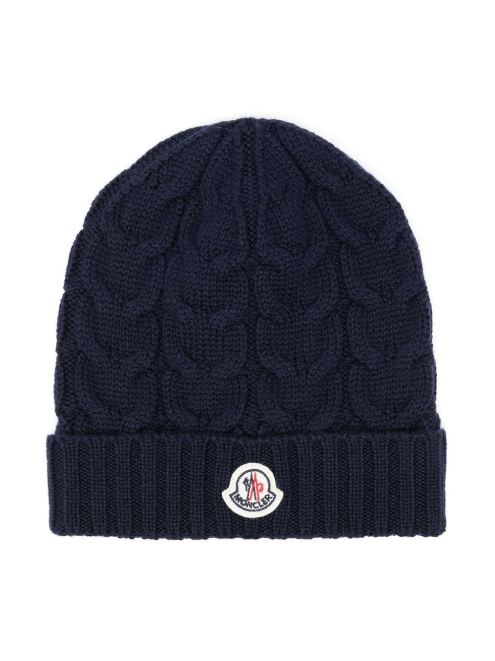 قبعة صوفية زرقاء مع رقعة شعار MONCLER للأطفال