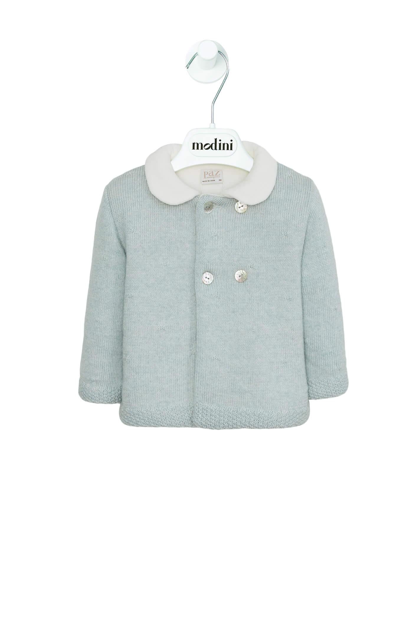 سترة ماركة Paz Rodriguez. ملابس بتفاصيل، مع أزرار عند الفتحة، وغطاء ياقة بيضاء وتطريز على أطراف الأكمام. سترة رمادية لؤلؤية مع بطانة طويلة الأكمام بدون غطاء رأس ، مريحة ورقيقة. مثالية لأية مناسبة خريف شتاء. قماش عالي الجودة بتصميم رسمي أنيق. فقط باللون الرمادي اللؤلؤي للأطفال حتى عمر 24 شهرًا. سترة من ماركة Paz Rodriguez ، مصنوعة دائمًا وفقًا لمعايير السلامة الأكثر تطلبًا، مع إعطاء الأولوية للمواد الخام الطبيعية مثل القطن أو صوف ميرينو الإضافي، ودائمًا تحت ختم "صنع في إسبانيا". الملابس مصنوعة من مواد عالية الجودة.