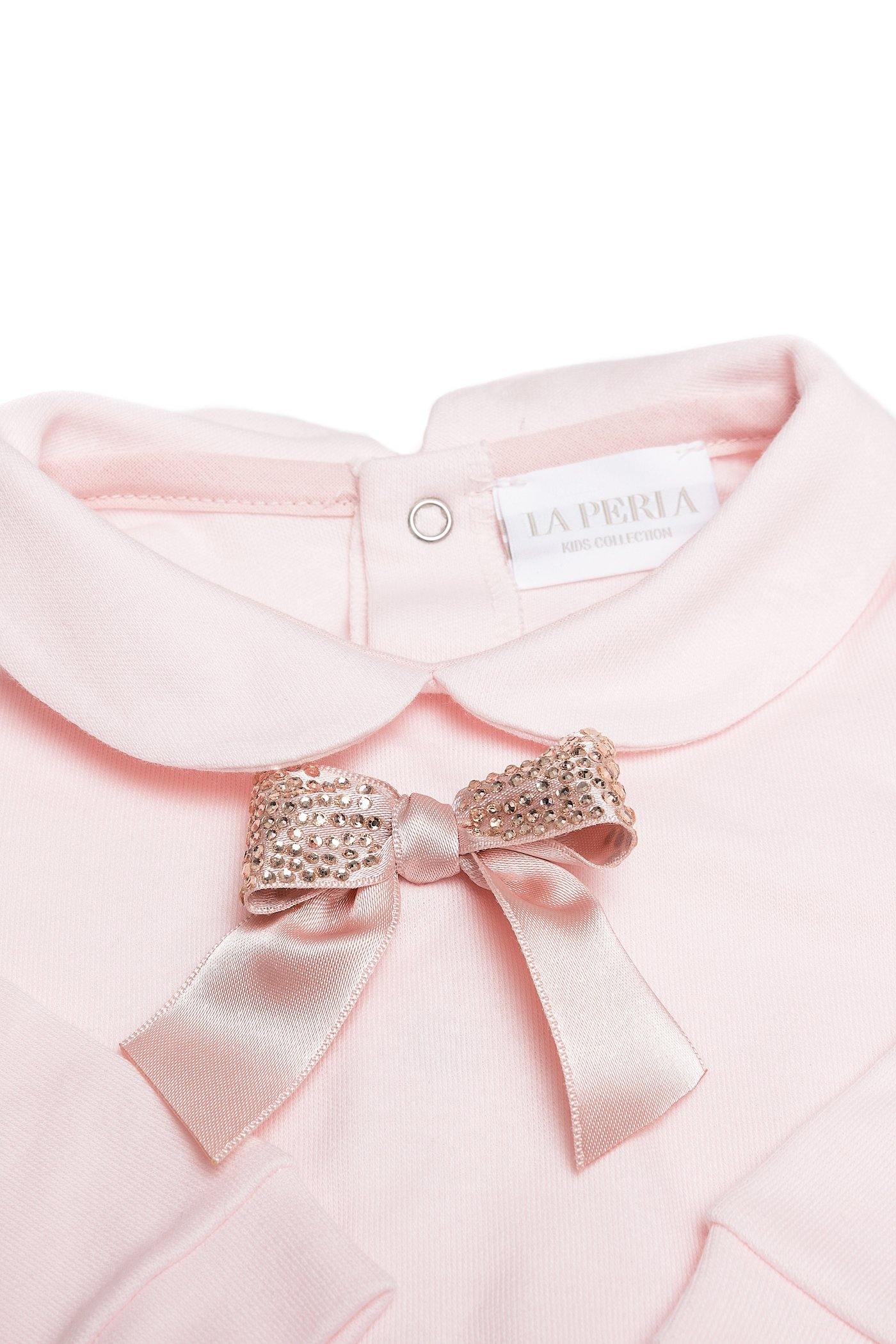 سيكون هذا البدلة ذات الأكمام الطويلة والساقين للفتيات الصغيرات الملابس الأكثر راحة لطفلك الصغير في الشتاء. مصنوع من القطن، وهو مصنوع من قماش محبوك لطيف وناعم. رائع بتصميمه، فهو مصنوع من قوس كريستال سواروفسكي. تأتي هذه المجموعة مع حذاء وشريط مرصع بكريستال سواروفسكي، كما أنها مصنوعة من القطن.