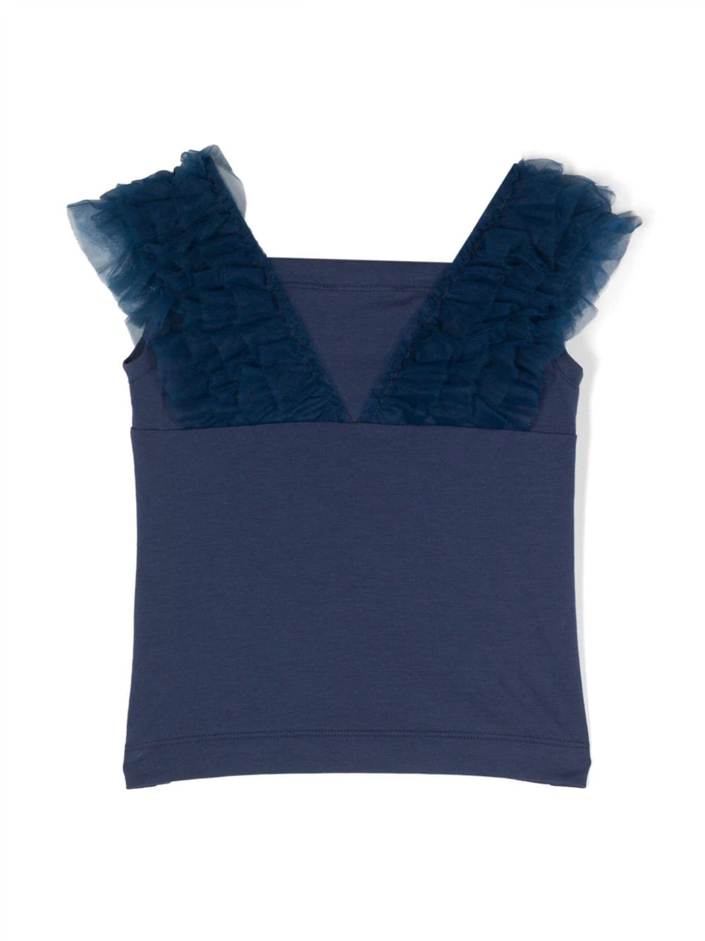 تيشيرت ماركة موناليزا. تي شيرت بحافة كشكش. زين اللؤلؤ الاصطناعي.