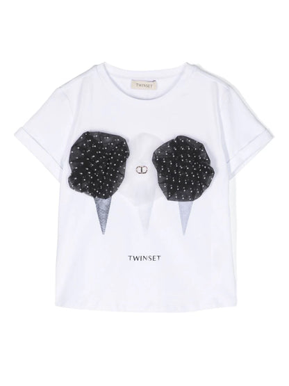 تي شيرت أبيض بطبعة كلب وشعار TWINSET