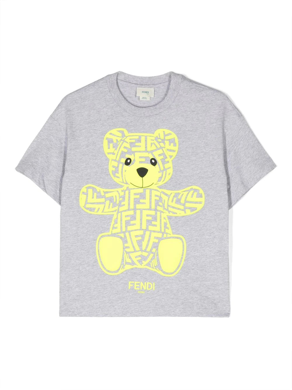 تي شيرت مع طباعة جرافيك من ماركة Fendi Kids. رمادي داكن، قطن، طبعة جرافيك في الأمام، رقبة دائرية، أكمام قصيرة، وحاشية مستقيمة. تتمتع Fendi Kids بعلامة تجارية مميزة وشعبية في جميع أنحاء العالم. مجموعات الأطفال تكرر النماذج للبالغين، وتجمع بين الفخامة والراحة.