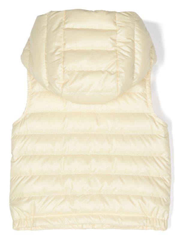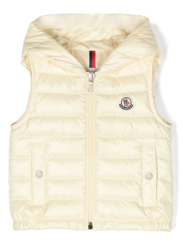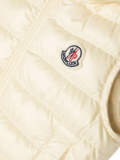 سترة مبطنة بغطاء رأس وشعار العلامة التجارية MONCLER. أبيض، حشوة سفلية، تصميم مبطن، رقعة شعار على الصدر، تصميم بغطاء رأس، إغلاق بزر كبس، جيوب بسحاب في الأمام، تصميم بلا أكمام، وحاشية مستقيمة. ملابس العلامة التجارية MONCLER هو تصميم أصلي معروف في جميع أنحاء العالم. تتميز ملابس العلامة التجارية بأنها أنيقة وعملية وخفيفة الوزن، وتضمن الراحة والحماية المذهلة ضد الطقس العاصف.