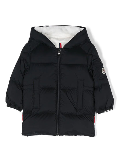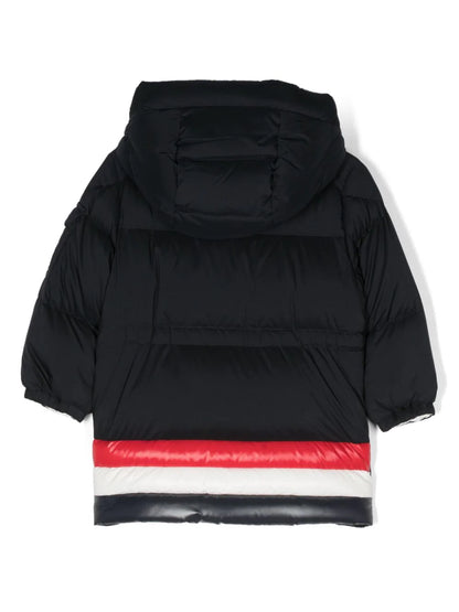 السترة - سترة مبطنة بغطاء رأس من ماركة MONCLER. أزرق داكن، أسفل، رقعة شعار على الكم، تفاصيل ثلاثية الألوان، تصميم مبطن، تصميم بغطاء للرأس، سحاب للإغلاق من الأمام، أكمام طويلة، أساور مرنة، جيب بغطاء قلاب على الكم، جيبان جانبيان وحاشية مستقيمة . ملابس العلامة التجارية MONCLER هو تصميم أصلي معروف في جميع أنحاء العالم. تتميز ملابس العلامة التجارية بأنها أنيقة وعملية وخفيفة الوزن، وتضمن الراحة والحماية المذهلة ضد الطقس العاصف.