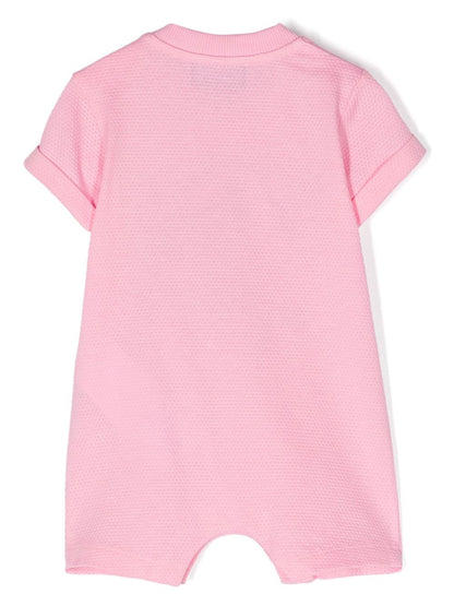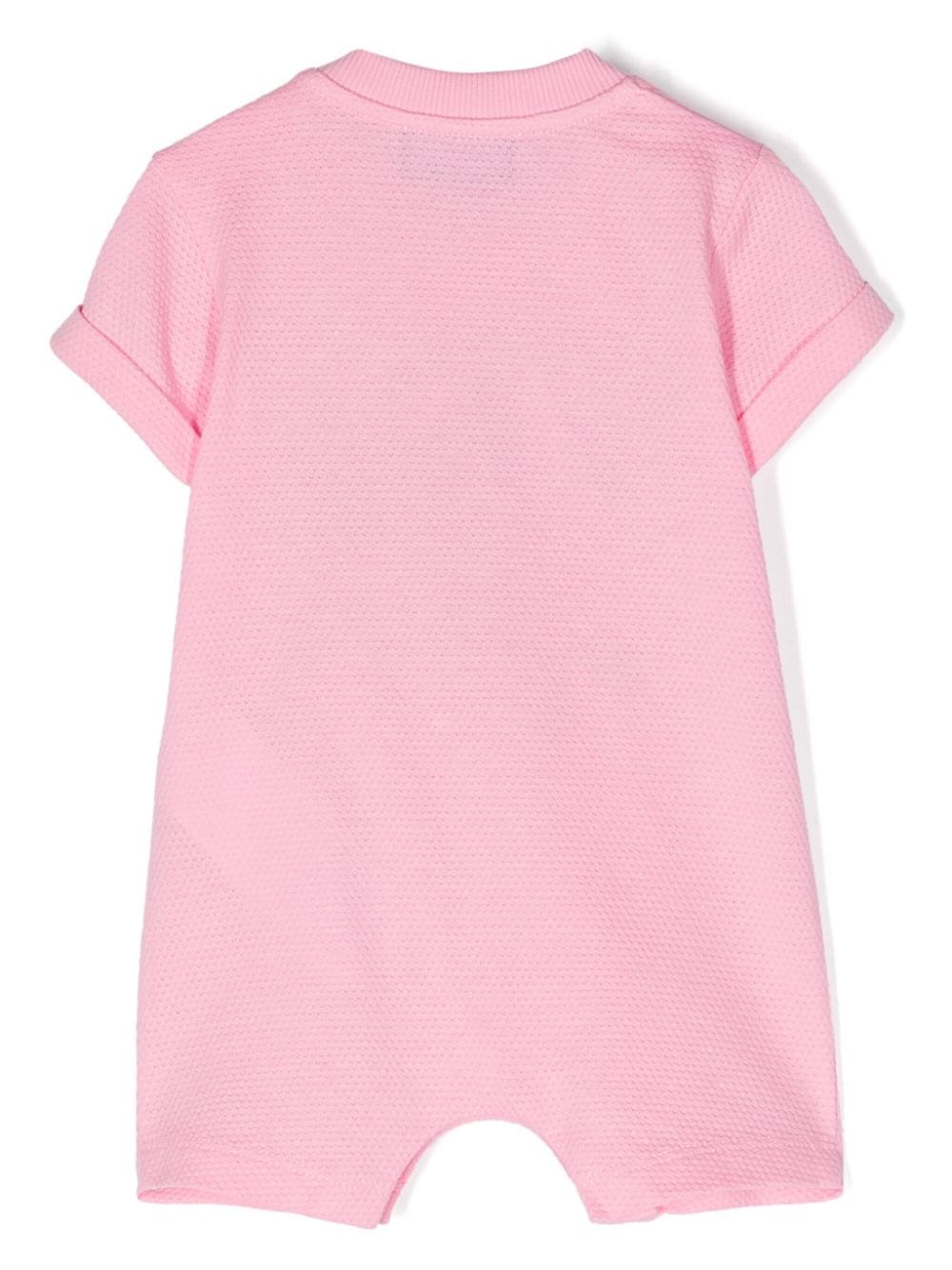 سيكون الطقم ذو الأكمام القصيرة للأولاد الصغار هو الملابس الأكثر راحة لطفلك الصغير في فصل الربيع والصيف. تصميم الدبدوب المميز، رقبة دائرية، زر للإغلاق في الخلف، أكمام قصيرة. مصنوع من القطن، باللون الأزرق والقماش مطبوع عليه رسم الدب وشعار الماركة. رائع بتصميم بدلة الجسم من العلامة التجارية Moschino، فهو يوفر خيالًا غير محدود للأطفال لتوفير أسلوب استثنائي وأصلي لا يُنسى للأولاد والبنات.