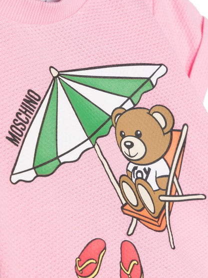 علبة هدية مكونة من بدلة زرقاء بأكمام قصيرة مع شعار ودب للأطفال الأولاد الصيف موسكينو
