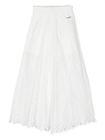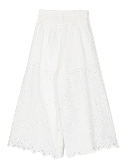 بنطلون واسع باللون الأبيض مع تفاصيل مخرمة للفتيات TWINSET