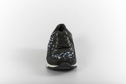 حذاء رياضي Annette من ماركة Philipp Plein. حذاء بتفاصيل مطعمة بالكريستال باللون الأبيض والأسود والأزرق، مطرز على اللسان بلون معدني ومنقوش على النعل الأبيض، حذاء رياضي من Annette بنعل أسود وأبيض، خفيف ومريح. مثالي لأي مناسبة في فصلي الخريف والشتاء. جلد عالي الجودة بتصميم رياضي غير رسمي. باللون الأسود فقط للفتيات . أحذية رياضية من العلامة التجارية فيليب بلين، تقدم خيالًا غير محدود للأطفال لتوفير أسلوب استثنائي وأصلي لا يُنسى للأولاد والبنات، وهي تحظى بشعبية في جميع أنحاء العالم.