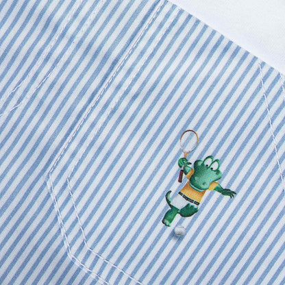 طقم مخطط بنمط التمساح من ماركة لابين هاوس. ملابس بتفاصيل، مع جيوب وأزرار في الخلف، مع زخرفة مطبوعة وصورة تمساح لاعب التنس في الأمام . مجموعة مريحة ورقيقة باللون الأبيض/ الأزرق الفاتح . مثالية لأي مناسبة الربيع والصيف. قماش عالي الجودة بتصميم رسمي أنيق. طقم علبة هدايا من ماركة لابين هاوس، مزيج من التواضع الراقي والأناقة والجودة. إن التطوير الدقيق للأنماط والاهتمام الكبير بكل التفاصيل يجعل ملابس هذه العلامة التجارية عملية ومريحة.