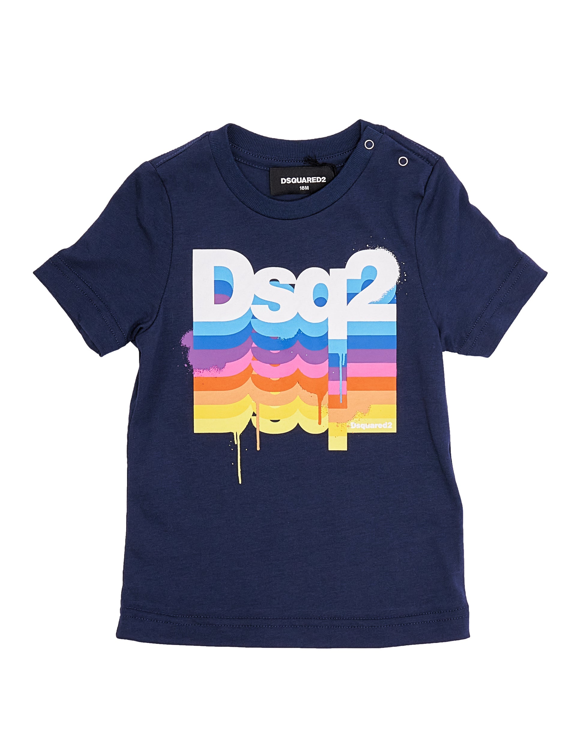 ملابس الأطفال - تيشيرت باللون الأزرق الداكن مع شعار DSQ2