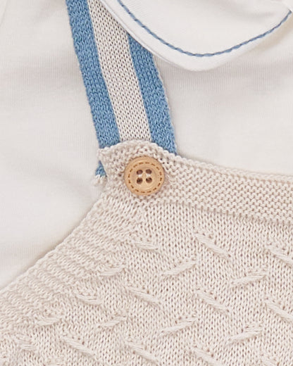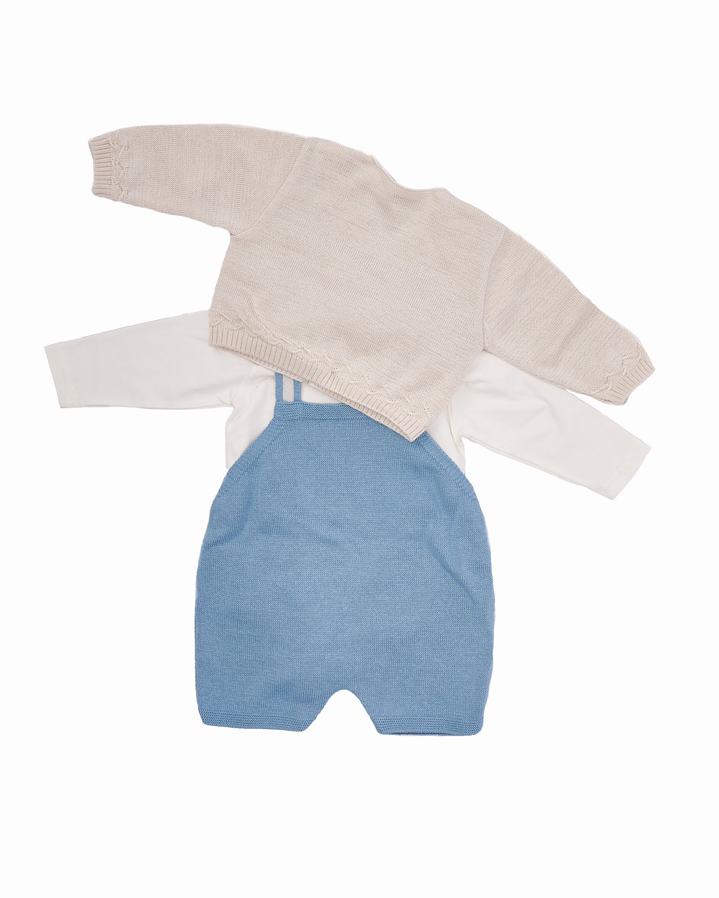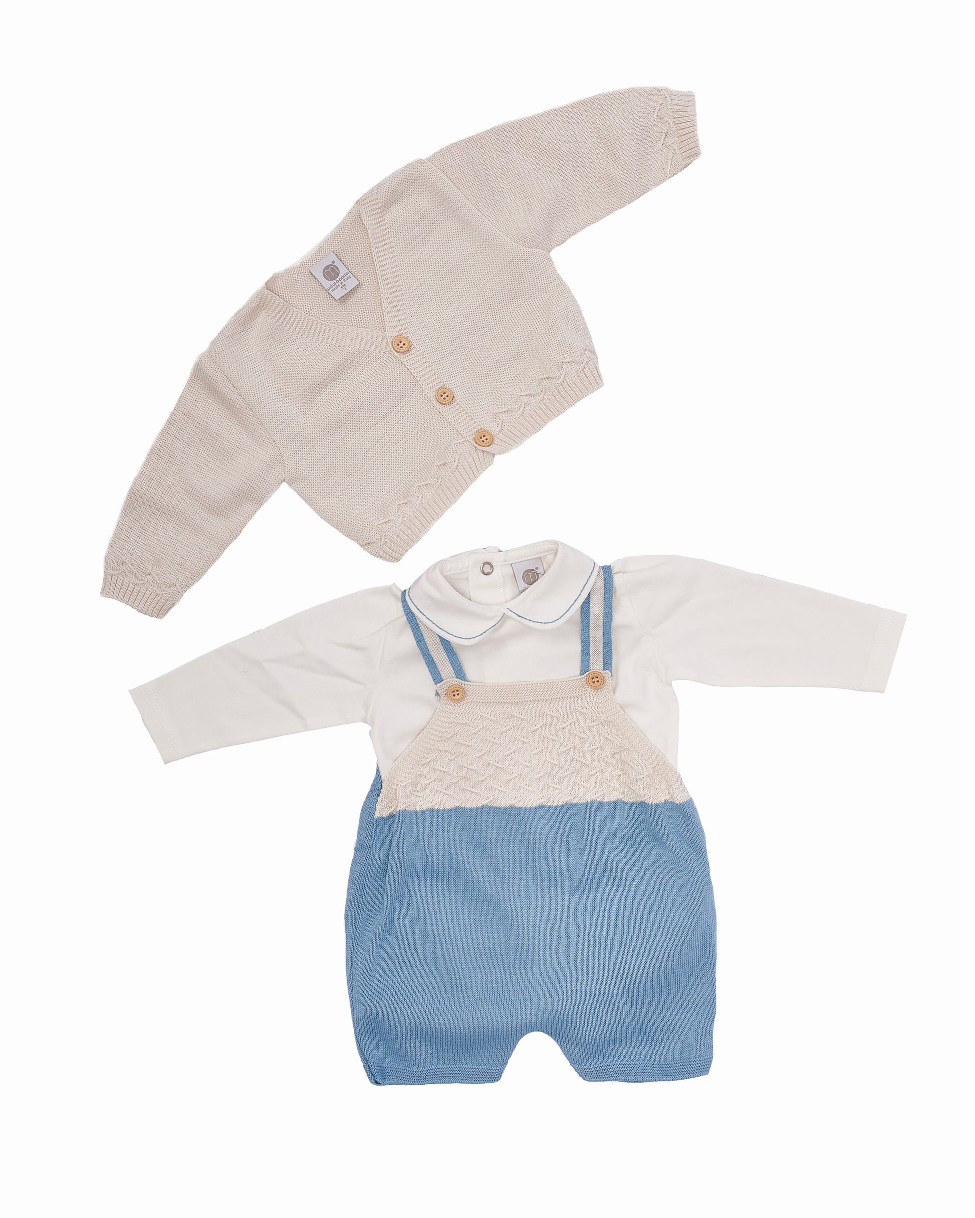 طقم ملابس وتي شيرت وسترة من ماركة MARLU. ملابس بتفاصيل وأزرار في الأمام . مجموعة ملابس باللون الأزرق الضبابي، قميص وسترة بيضاء بأكمام طويلة ، مريحة وحساسة. مثالية لأي مناسبة الربيع والصيف. قماش عالي الجودة بتصميم رسمي أنيق. يتم تصنيع MARLU دائمًا وفقًا لمعايير السلامة الأكثر تطلبًا، ودائمًا تحت ختم "صنع في إسبانيا". الملابس مصنوعة من مواد عالية الجودة.