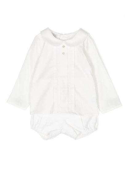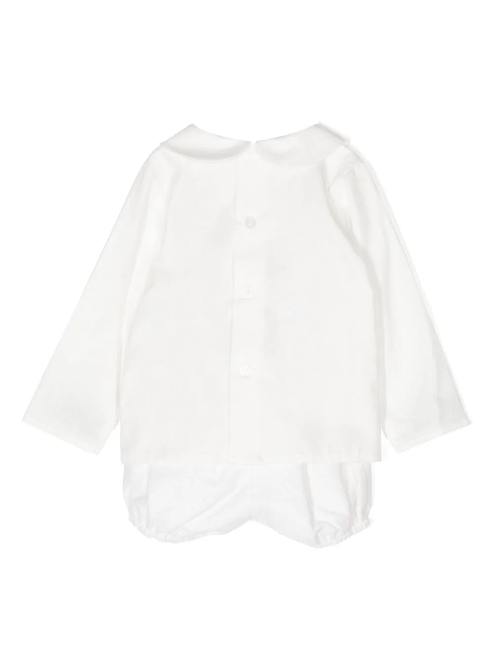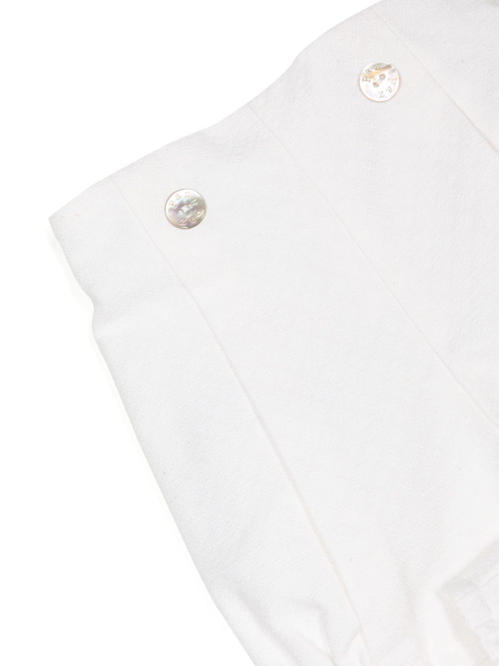 رومبر بمريلة وأكمام طويلة من ماركة Paz Rodriguez. لون أبيض ، قطن، ياقة مريلة، زر للإغلاق في الخلف، أكمام طويلة، حزام خصر مطاطي، أزرار زخرفية وحاشية مرنة. باز رودريغيز هي علامة تجارية إسبانية معروفة عالميًا بمجموعاتها الفاخرة من الملابس للأطفال والرضع مع لوحة ألوان دقيقة وتصميم رائع. تقدم Paz Rodríguez مجموعة واسعة من المنتجات المصنوعة حصريًا بمواد عالية الجودة والعناية بالأطفال الصغار.