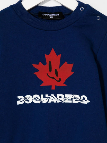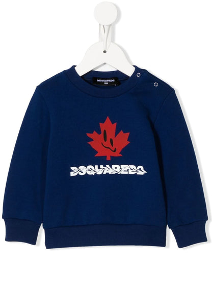 ملابس الأطفال - سويت شيرت بشعار Dsquared2 باللون الأزرق الداكن