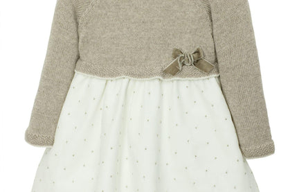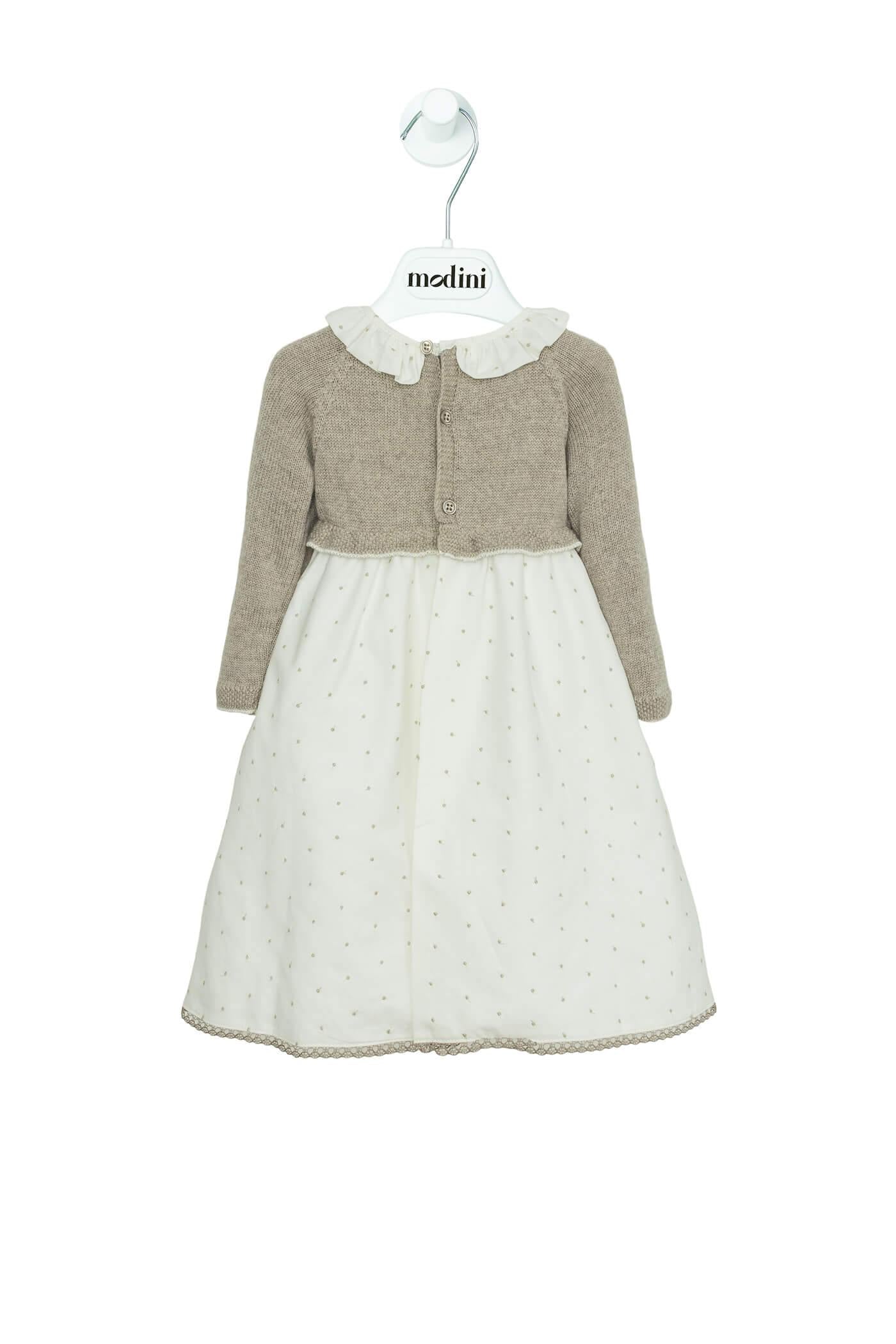 فستان ماركة باز رودريجيز. ملابس بتفاصيل، مع زخرفة على الرقبة، وتفاصيل منقطقة للملابس. فستان بندقي، ببطانة مريحة ورقيقة . مثالية لمناسبات الخريف والشتاء الخاصة. قماش عالي الجودة بتصميم رسمي أنيق. باللون الأبيض والبندق فقط للفتيات حتى عمر 9 أشهر . فستان ماركة Paz Rodriguez دافئ دائمًا مع معايير السلامة الأكثر تطلبًا، مع إعطاء الأولوية للمواد الخام الطبيعية مثل القطن أو صوف ميرينو الإضافي، ودائمًا تحت ختم "صنع في إسبانيا". الملابس مصنوعة من مواد عالية الجودة.