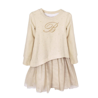 ملابس الأطفال - فستان مزدوج مع سترة ذهبية ملكة جمال بلومارين