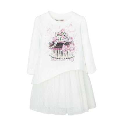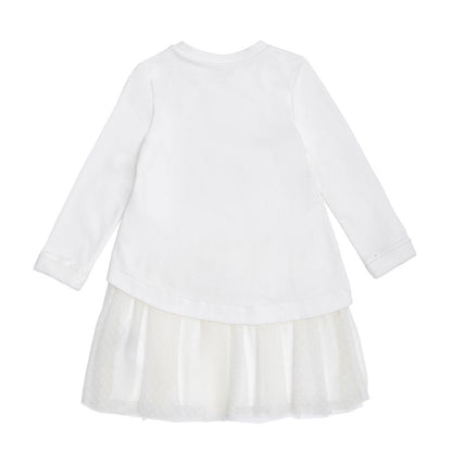 فستان مزدوج مع سترة ماركة Miss Blumarine . ملابس بتفاصيل وطباعة لؤلؤ وكريستالات مدمجة، بلمسة نهائية من التول. فستان جيرسي مزدوج، مرن ومتطور. مثالي لأيام الخريف أو المناسبات الخاصة. نسيج عالي الجودة بتصميم رسمي كاجوال. باللون الأبيض فقط للفتيات حتى سن 5 سنوات. فستان Miss Blumarine للفتيات هو ثوب رقيق وشاعري نموذجي لعلامتها التجارية، مع التنقل والأسلوب. التشطيبات دائمًا عملية ومريحة. صممت وصنعت لتلبيس الأميرات.