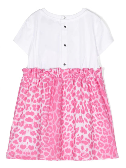 فستان ماركة فيليب بلين. ملابس بتفاصيل، مزينة بطبعة الشعار اللامعة وطبعة الفهد الوردية. فستان أبيض/وردي بأكمام قصيرة، مريح ومرن. مثالية لأية مناسبة. نسيج عالي الجودة بتصميم رسمي كاجوال. يوفر فستان ماركة Philipp Plein خيالًا غير محدود للأطفال ليقدم أسلوبًا استثنائيًا وأصليًا لا يُنسى للأولاد والبنات.