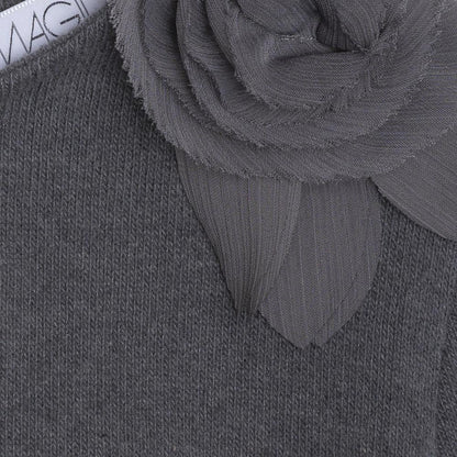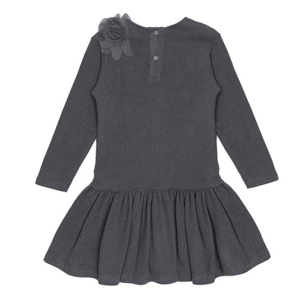 ملابس أطفال - فستان رمادي مع زهرة ماجيل
