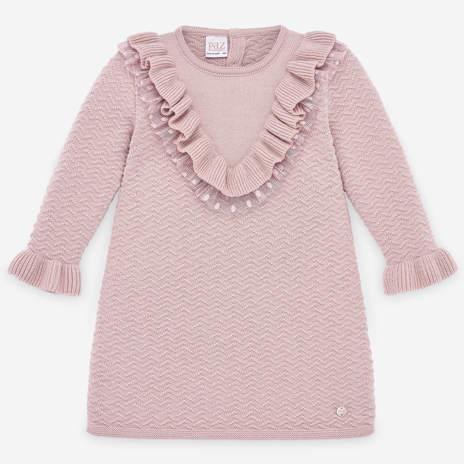 فستان تذكاري من ماركة Paz Rodriguez. ملابس بتفاصيل، مع زخرفة في المقدمة. فستان وردي، وأكمام طويلة، دافئ ورقيق. مثالية لأية مناسبة خريف شتاء. قماش عالي الجودة بتصميم رسمي أنيق. باللون الوردي فقط للفتيات حتى عمر 6 سنوات. فستان ماركة Paz Rodriguez ، يُصنع دائمًا وفقًا لمعايير السلامة الأكثر تطلبًا، مع إعطاء الأولوية للمواد الخام الطبيعية مثل صوف ميرينو الإضافي، ودائمًا تحت ختم "صنع في إسبانيا". الملابس مصنوعة من مواد عالية الجودة.
