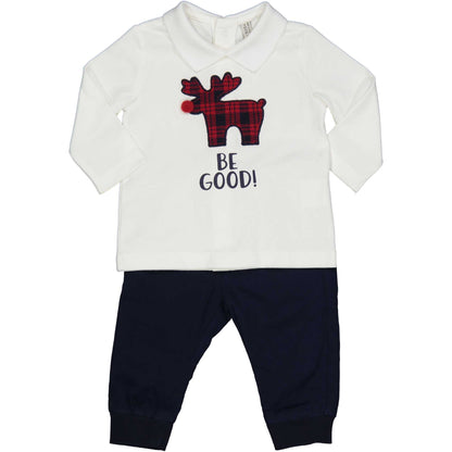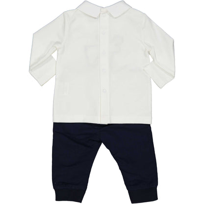 قم بشراء طقم للأولاد مع تي شيرت أبيض وبنطلون أزرق من ماركة BIRBA. ملابس بتفاصيل وبنطلون أزرق وتي شيرت أبيض بطبعة من الأمام ، مريح وراقي. مثالية لمناسبات الخريف والشتاء. نسيج عالي الجودة بتصميم غير رسمي.