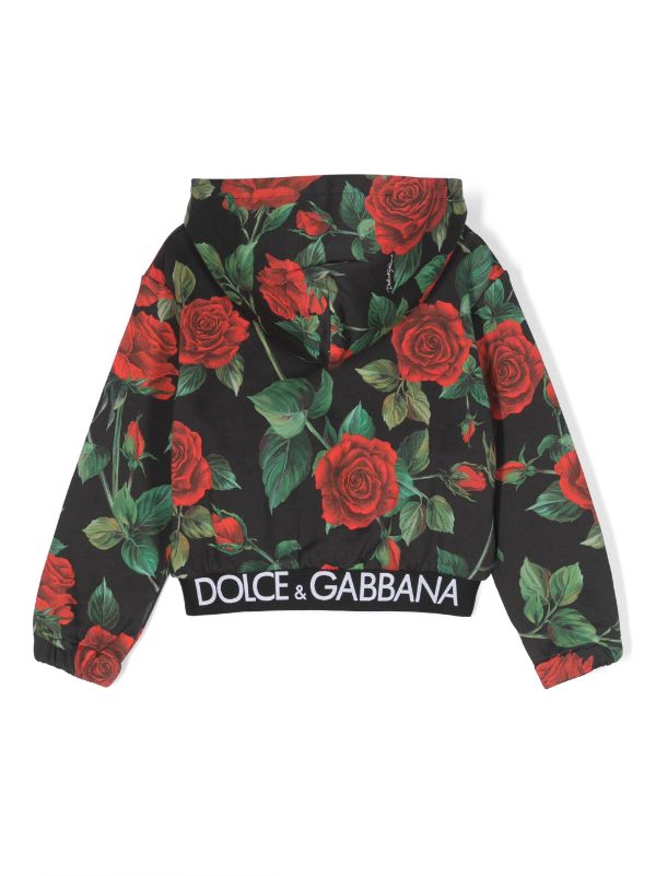 سويت شيرت بغطاء للرأس بطبعة وردية من ماركة Dolce & Gabbana. اللون الأسود، طباعة الورد، القطن، تصميم بغطاء للرأس، وأكمام طويلة. تعكس ملابس الأطفال من العلامة التجارية العالمية الشهيرة Dolce & Gabbana اتجاهات الموضة للبالغين، ولكنها في الوقت نفسه تحافظ على أقصى قدر من الراحة والجودة والتصميم الحصري والأسلوب المميز.