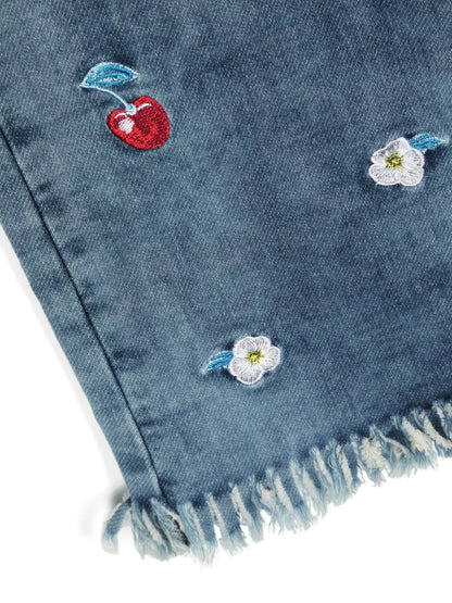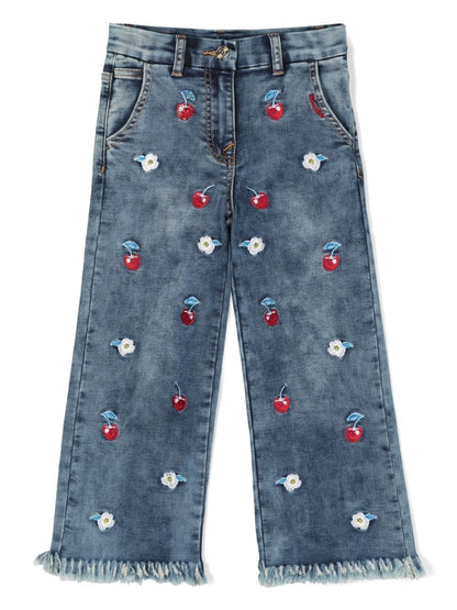 جينز بتطريز زهور وأطراف مهترئة للفتيات MONNALISA