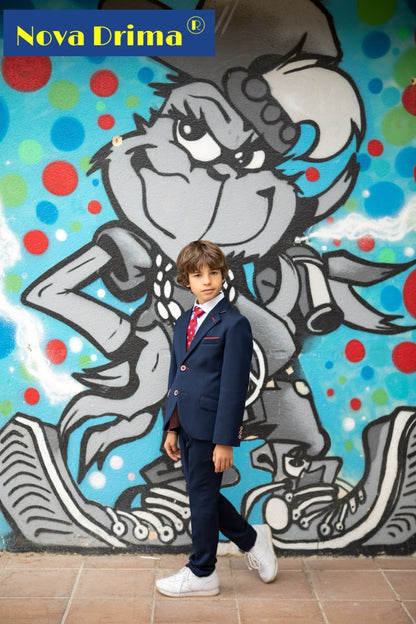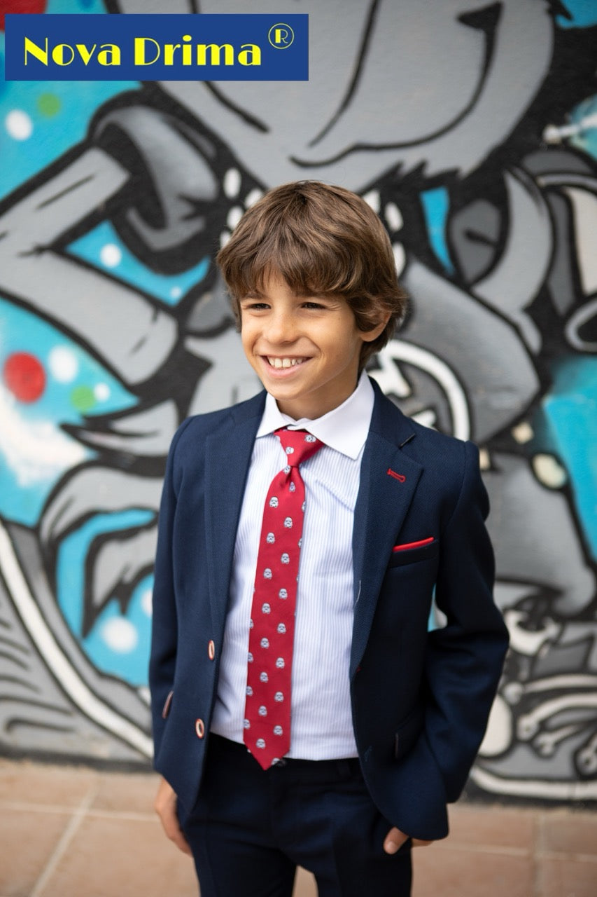 بدلة كاملة مع ربطة عنق من ماركة NOVA DRIMA. طقم كامل يتكون من سترة زرقاء فاتحة، وقميص أبيض، وبنطلون طويل أزرق فاتح، وربطة عنق، ستايل أنيق. بدلة مريحة وحساسة. مثالية للمناسبات الخاصة خريف شتاء. قماش عالي الجودة بتصميم رسمي أنيق. يسعى مصممو الأزياء إلى مراعاة احتياجات الأطفال إلى أقصى حد، مما يخلق قطعة مريحة وعملية للأطفال تتميز بالجمال والأناقة.