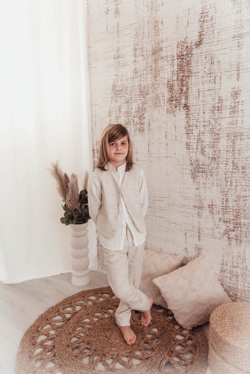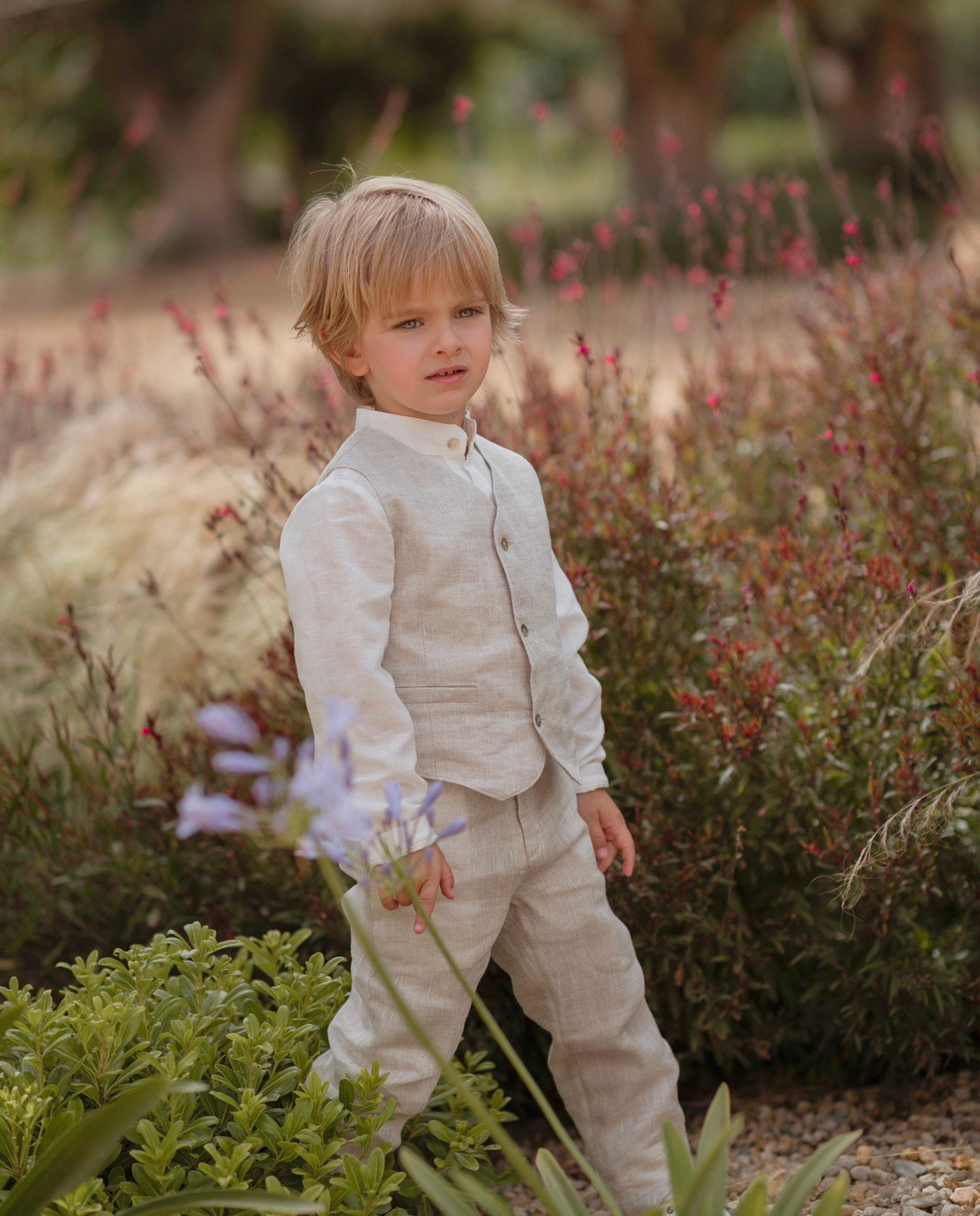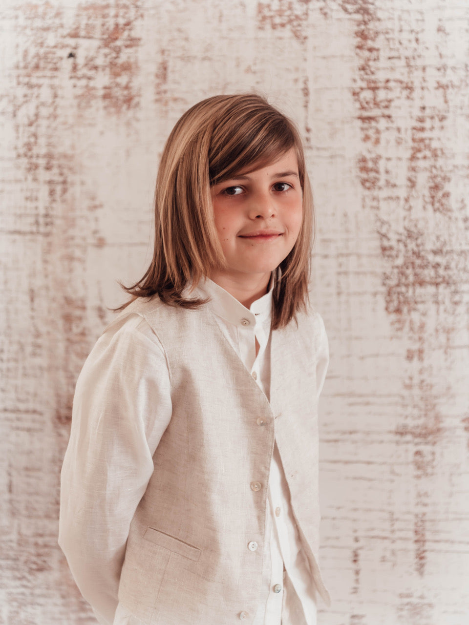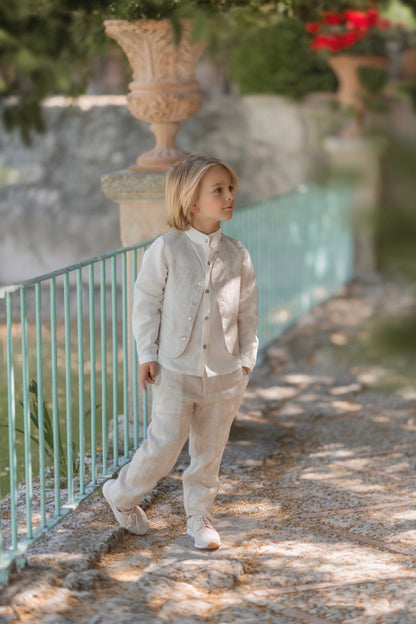 بدلة كتان 510 للصبي باللون البيج Mimilú