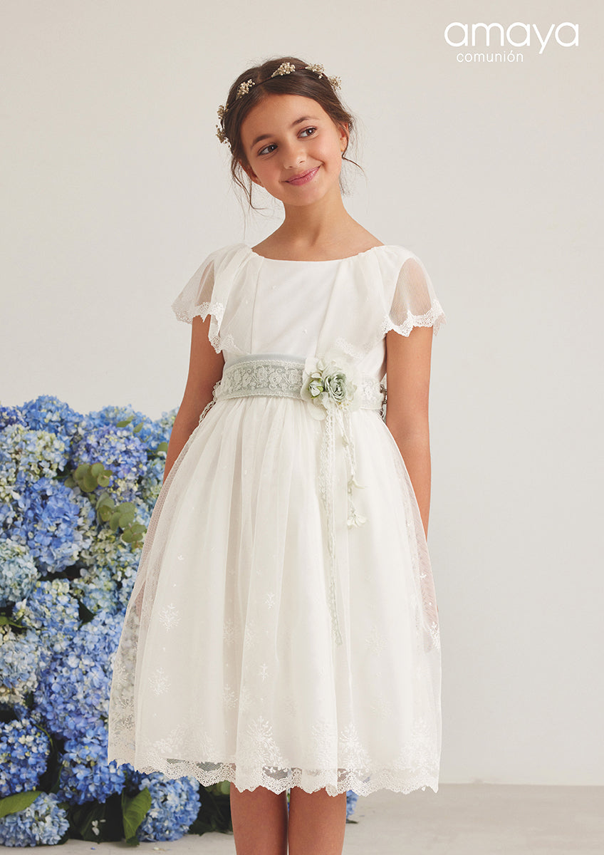فستان الحفل من ماركة أمايا. ملابس ذات تفاصيل مصممة بأحلى الأقمشة. وهي مصنوعة من التول المطرز، ترتدي الزهور الوردية على خصرها. الفستان بدون أكمام مزين بالدانتيل الأبيض والقماش البلوميتي، والظهر المبهر ذو فتحة الرقبة المفتوحة. ل تمثل MAYA دائمًا النمط الرومانسي المميز للعلامة التجارية، وكما هو الحال في كل مجموعة، فهي تمثل التزامًا كبيرًا بالابتكار والحرفية في إكسسواراتها.