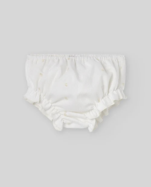 Vestido de algodón blanco de manga corta con braguitas para bebé niña Paz Rodriguez