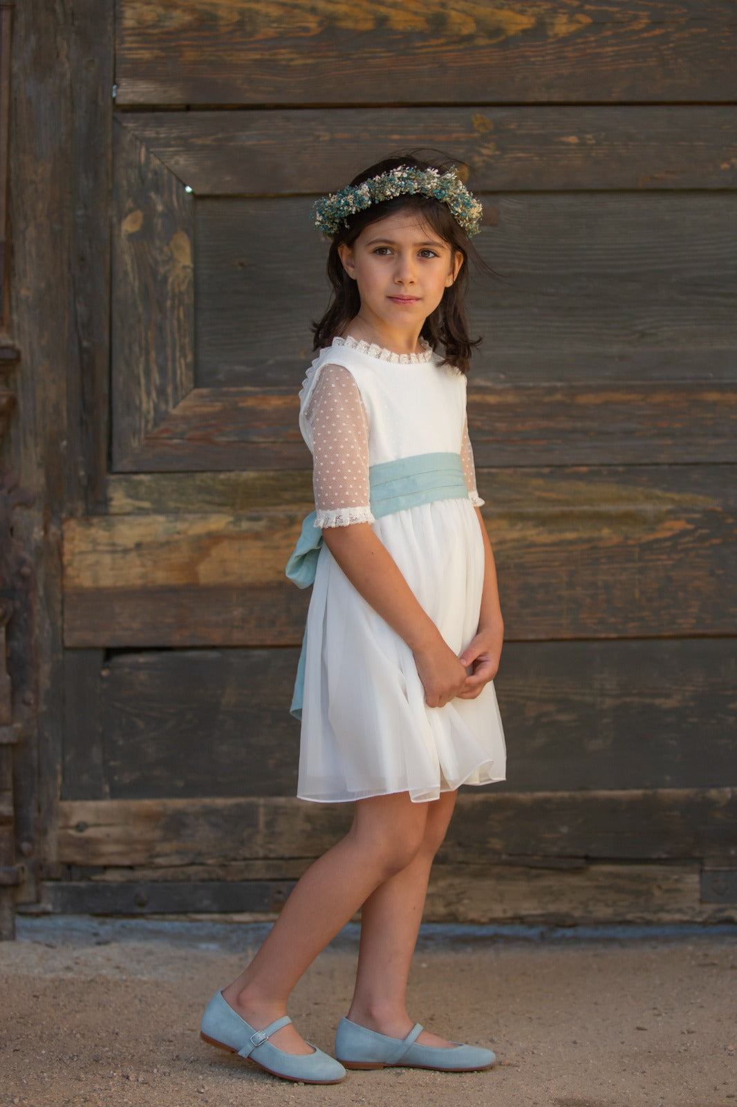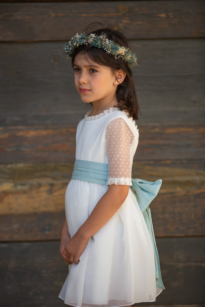 فستان الحفل للفتيات بأكمام قصيرة مع دانتيل وطبقات مزدوجة من اللون الأخضر الزبرجد (التنورة)، مع ظهر مغلق وفيونكة مصنوع من قماش الزبرجد الأخضر، مريح ورقيق. مثالية للمناسبات الخاصة . فساتين أنيقة من ماركة Coordinanos، يتم تصنيعها فقط بجودة عالية في إسبانيا، وفقًا للمفهوم الإبداعي الحصري للعلامة التجارية. يسعى مصممو الأزياء إلى مراعاة احتياجات الفتيات إلى الحد الأقصى، مما يخلق قطعة مريحة وعملية للفتيات تتميز بالجمال والأناقة.