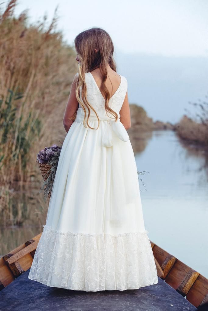 فستان المناولة للفتيات من ماركة بيلا بيمبا وبامبولين بالطراز الأصلي. الفستان إكرو، بدون أكمام، مع رقبة دائرية الظهر المفتوح والأنيق مزين بأزرار لؤلؤية. مصنوع من القماش مع دانتيل خاص بأجواء فاخرة، ويتميز بنمط عتيق متقن مرسوم على الصدر ووشاحه من نفس الطراز. فستان المناولة مع تنورة طويلة من التول مكونة من 3 طبقات، منتهية بكشكشة من قماش التول مع نفس دانتيل الزهرة، مع زهرة كبيرة على الخصر. ج مع الاهتمام بكل التفاصيل من خلال إكسسواراتها المصنوعة يدويًا، وإنشاء مجموعات بسيطة مع مجموعة واسعة من الأساليب لجميع الأذواق دون فقدان الجوهر الذي يلهم العلامة التجارية.