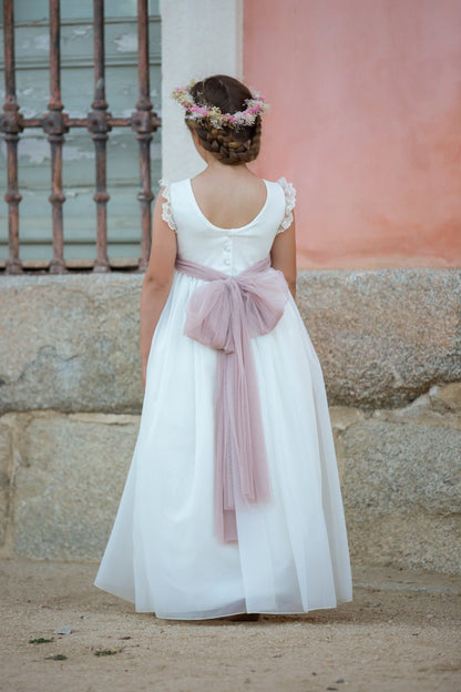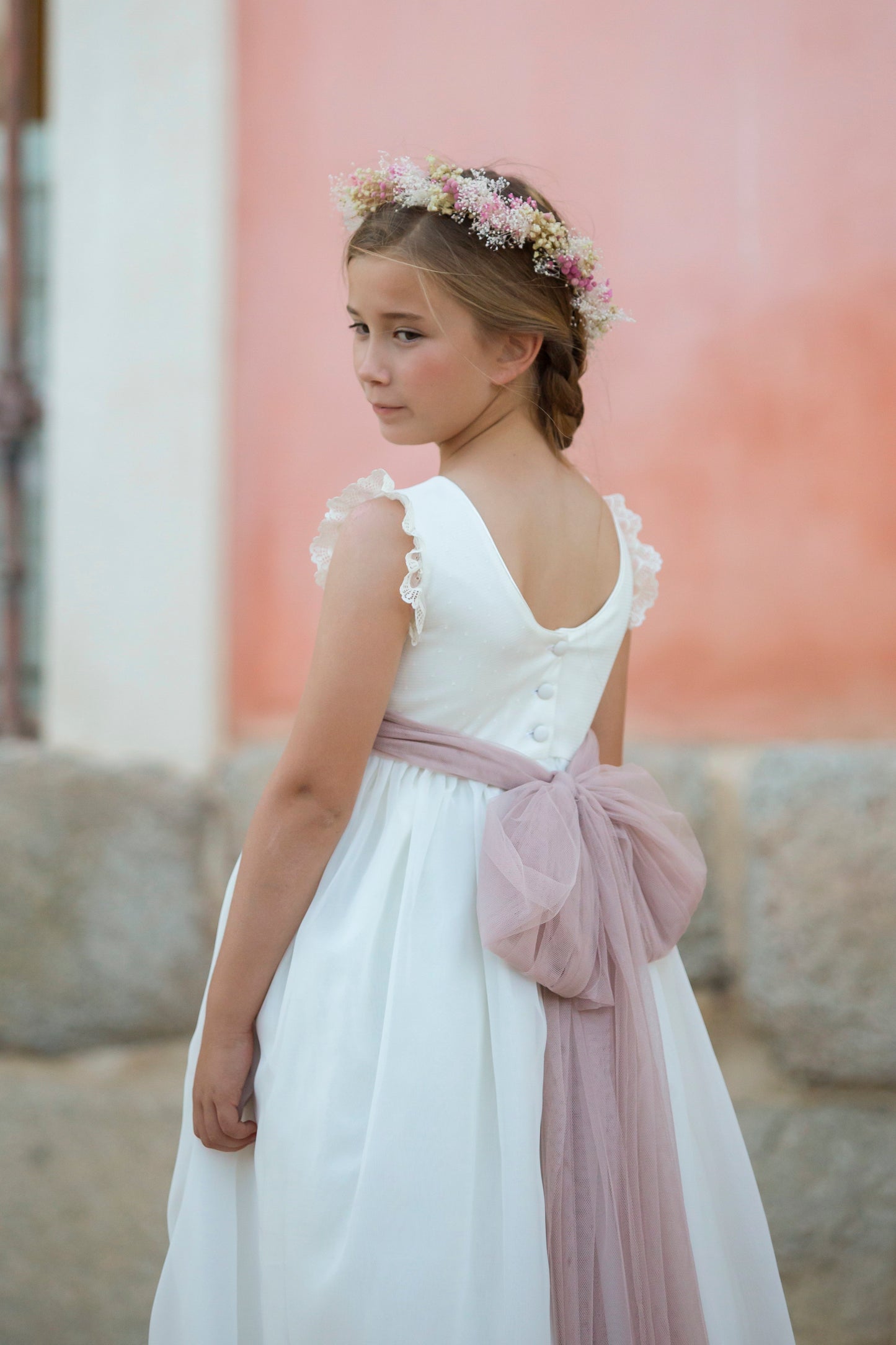 فستان المناولة الأبيض/العاجي للفتيات بلا أكمام وله تنورة من ثلاث طبقات من الساتان، وقماش التول البلوميتي في الأعلى، مع ظهر مفتوح وفيونكة من التول بلون رملي داكن، مريح ورقيق. مثالية للمناسبات الخاصة . فساتين أنيقة من ماركة Coordinanos، يتم تصنيعها فقط بجودة عالية في إسبانيا، وفقًا للمفهوم الإبداعي الحصري للعلامة التجارية. يسعى مصممو الأزياء إلى مراعاة احتياجات الفتيات إلى الحد الأقصى، مما يخلق قطعة مريحة وعملية للفتيات تتميز بالجمال والأناقة.