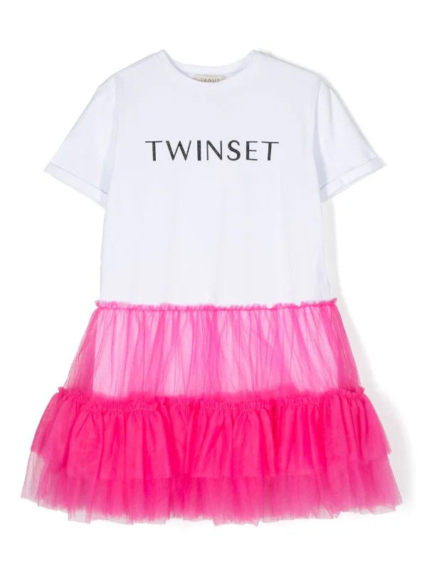 فستان أبيض بدون أكمام للفتيات مع تنورة منتفخة TWINSET