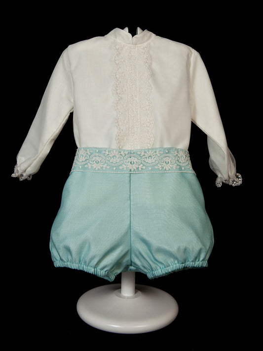 Traje de lino pantalón corto Menta 590 para el niño Mimilú